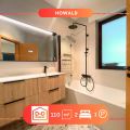 - Salle de bain avec baignoire et douche